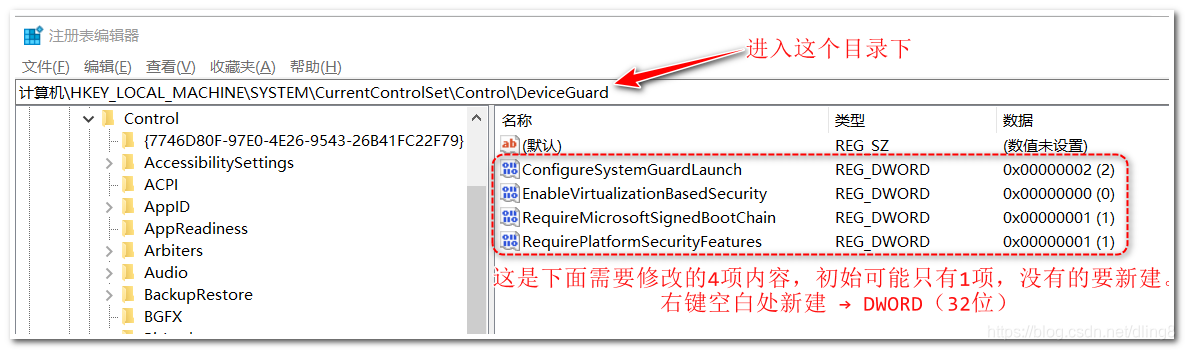 计算机\HKEY_LOCAL_MACHINE\SYSTEM\CurrentControlSet\Control\DeviceGuard