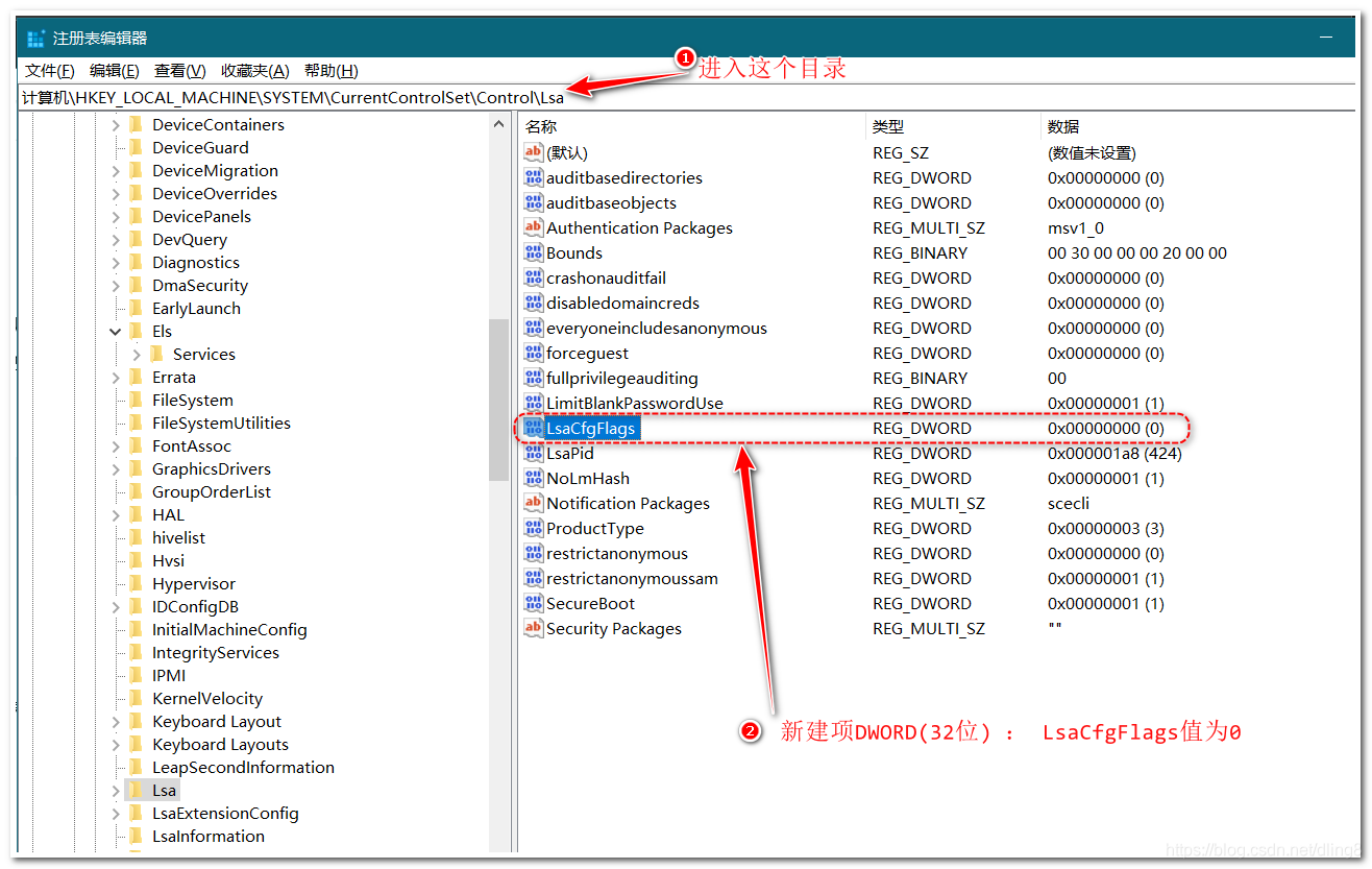计算机\HKEY_LOCAL_MACHINE\SYSTEM\CurrentControlSet\Control\Lsa